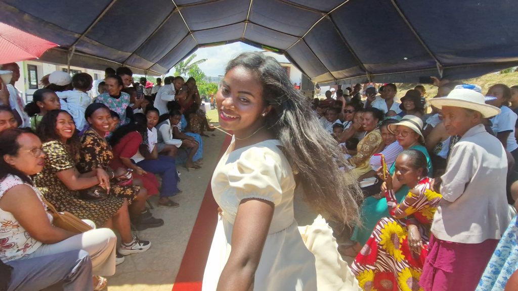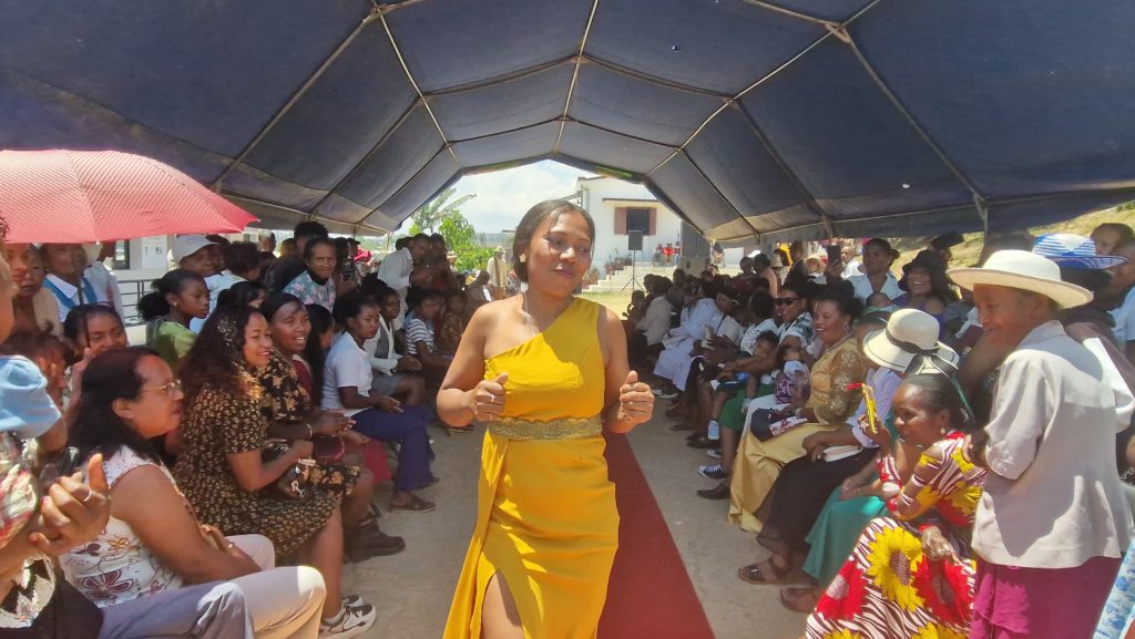 Au total, 98 tenues ont été présentées devant un public chaleureux et émerveillé. Cette journée a également été marquée par la remise des diplômes de couture aux jeunes femmes formées au sein de l’atelier. De nombreuses autorités locales étaient présentes, parmi lesquelles le président du quartier, le commissaire de police et plusieurs représentants d’institutions locales. La télévision régionale a également couvert l’événement, contribuant à faire rayonner le travail et le talent des couturières MIARA.