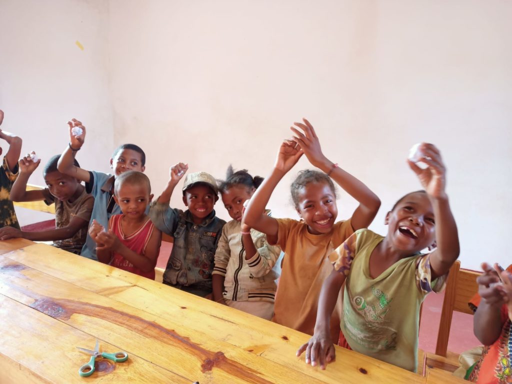 Au Centre d’accueil MIARA, les enfants s’épanouissent grâce à des activités ludiques, créatives et porteuses de sens. Guidés par Madame Lanto, notre enseignante passionnée et engagée, ils découvrent le plaisir d’apprendre autrement, dans un cadre stimulant et bienveillant. Mme Lanto est soutenue par Loria, une jeune aide-éducatrice engagée et investie, qui contribue activement à la vie et au bon fonctionnement du centre.